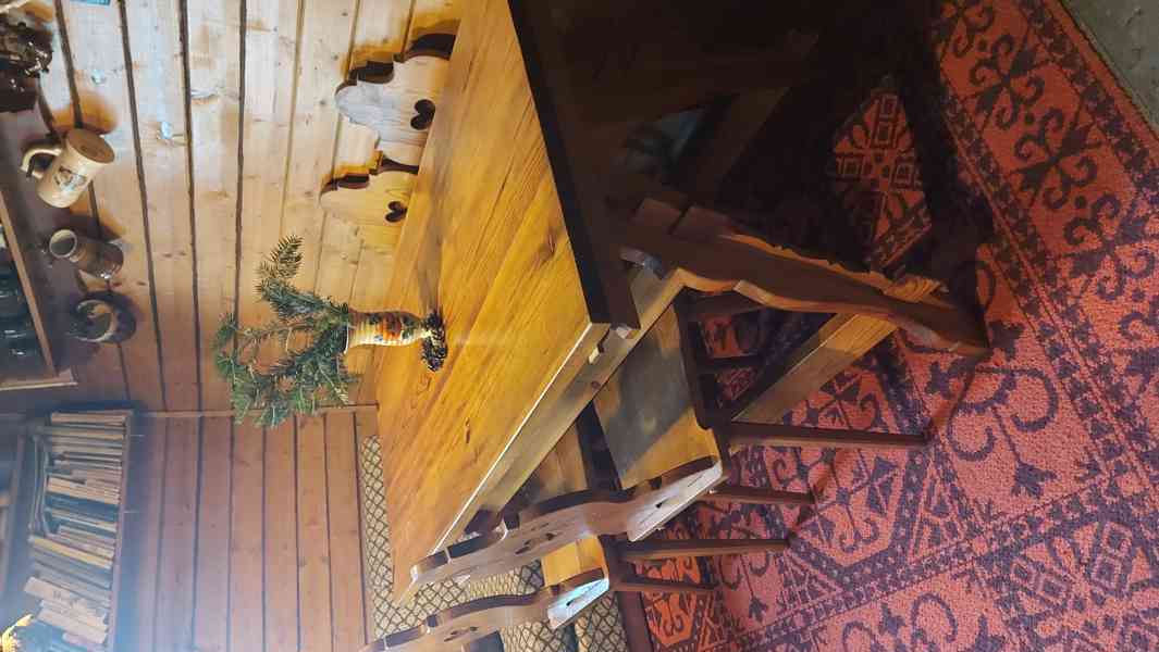 Prodám originální jídelní sestavu v tradičním valašském stylu, kterou kdysi vlastnoručně vyrobil můj dědeček. Nejde o žádnou sériovou výrobu z obchodních řetězců, ale o poctivé truhlářské řemeslo, které vydrží generace.