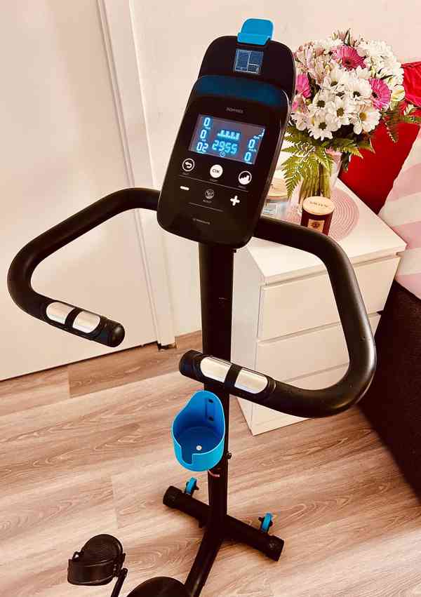 Prodám plně funkční rotoped EB140 zn. Domyos, pořizovací cena 6.499,- Kč. Aktivně byl používaný cca měsíc, poté bezchybně a spolehlivě plnil funkci věšáku na prádlo:-) Tichý chod, stabilní konstrukce, 15 nastavitelných úrovní odporu, napájení pomocí adaptéru. Konzole zobrazuje tepovou frekvenci (snímače srdečního tepu na řídítkách), kalorickou spotřebu, vzdálenost, čas, rychlost a úroveň tréninku. Drobné oděrky na sedle, jinak top stav. Sedlo lze měnit nebo opatřit potahem téže značky z materiálu s tvarovou pamětí. Pouze osobní převzetí, příp. po domluvě HK a okolí mohu dovézt.