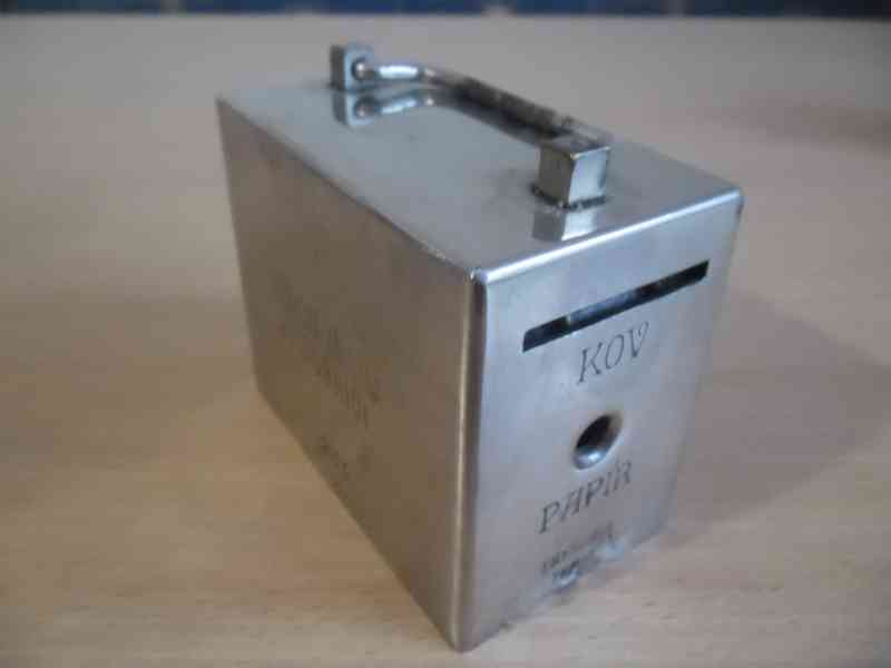 Prodám tuto starou kovovou pokladničku občanská záložna v Dobříši. Kasička je bez klíčku , ale otevřena, zámek zůstal uvnitř. Stav viz foto. Cena 500Kč + poštovné. Koukněte i na moje ostatní inzeráty, více předmětů= jedno poštovné.